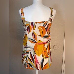 C&C California 100% Linen Tropical Top Button Front Tank Top Blouse sz Small