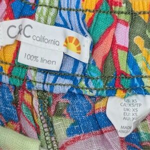 C&C California 100% Linen Wide Leg Cropped Pants Size XS Pockets Tropical Beach