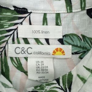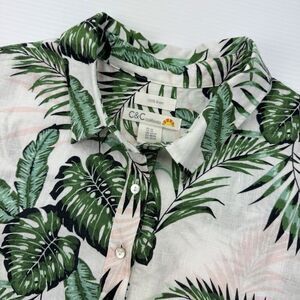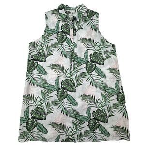 C&C California 2X Sleeveless Dress Linen Green Palm Leaf Print Tropical Beach