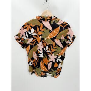 C&C California Black Tropical Print 100% Linen Button Up Shirt Women's Size XS