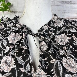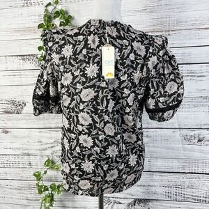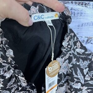 C&C California Blouse Top sz Small Black Pink Night Floral Peasant Boho Prairie