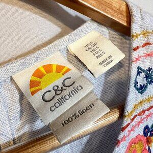 C&C California Blue Embroidered Linen Dress S Coastal Grandma Beach Vacation