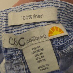 C&C California Blue White 100% Linen Striped Pull On Wide Leg Pants Size M