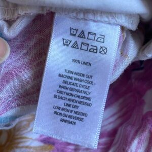 Great pre loved condition size large, Tropical Vibrant floral print shorts with a drawstring waist. Features pink, blue, yellow, and black colors on a white background. pure linen, great for the beach or casual lunch