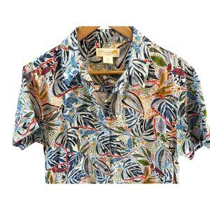 This lightweight linen shirt offers a breathable and stylish option for warm weather. Its vibrant tropical print adds color and charm to casual outings.
