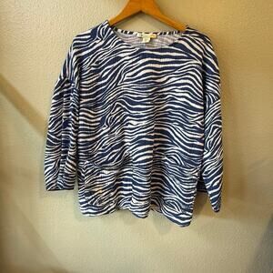 C&C California Cotton 3/4 Sleeve Blue & White Women's Top size Large