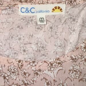 C&C California Crop Top Shirt Women's M Pink Multicolor Floral Abstract Tie Nape