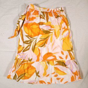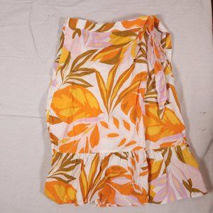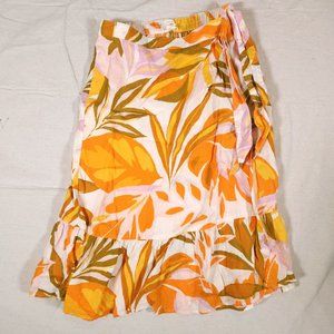 C&C California Faux Wrap Skirt Womens Large Floral 100% Linen Pocket Breathable