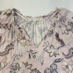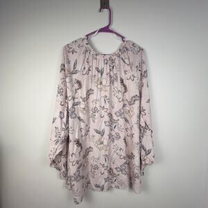 C&C California Floral Blouse 3X Boho V-Neck Long Sleeve 100& Rayon Plus Size Top