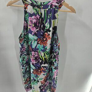 C&C California Floral Tropical 100% Linen Sheath Sleeveless Mini Dress