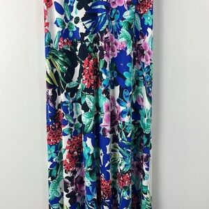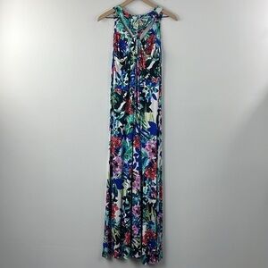 C&C California Floral Tropical Print Multi Color Blue Racerback Maxi Dress M
