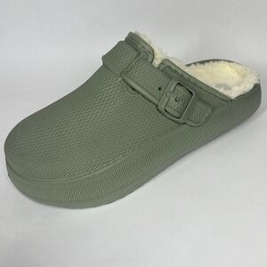 C&C California Fuzzy Lined Clogs Adjustable Buckle Olive Green Size 7-8 Comfy