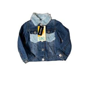 C&C California Girls Denim Jacket with Baby Blue Faux Fur Collar 3T NWT
