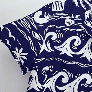 C&C California Hawaiian Novelty Beachy Print Linen Blend Button Down Shirt NEW