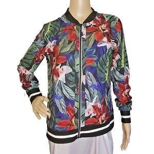 C&C California Lightweight Floral Tropical Active Jacket Medium Full Zip T56