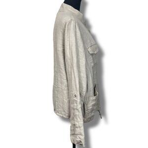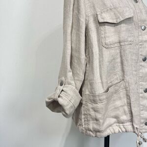 C&C California Linen Button Front Shacket Shirt Jacket Oatmeal Beige Size Med