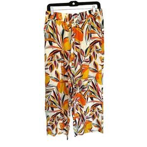C&C California Linen Pants Women Large Multicolor Fruit Resort Tropical Wide Leg
