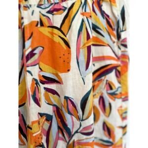 C&C California Linen Pants Women Large Multicolor Fruit Resort Tropical Wide Leg