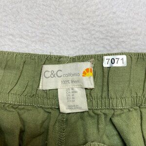 C&C California Linen Pants Womens M Olive Green Cargo Wide Leg Lightweight