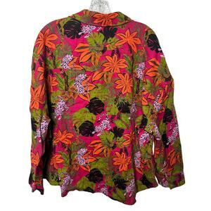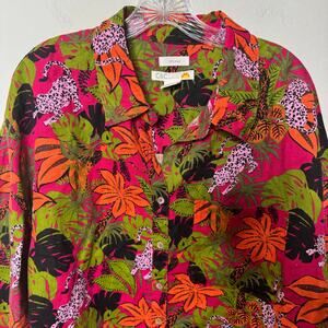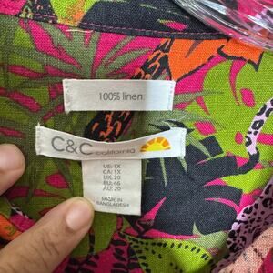 C&C California Linen Shirt 1X Tropical Leopard Print Button Down Boho Vacation
