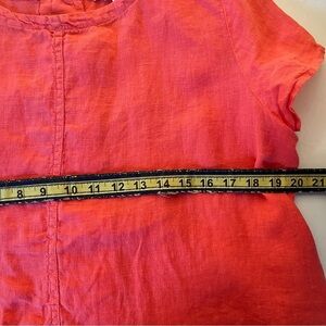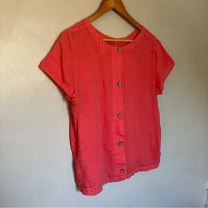 C&C California Linen Top Womens Large Coral Pink Button Back Boxy Lagenlook