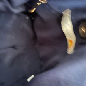 Navy blue interior and exterior macrame snap closure handbag. Clean in and out very nice preowned condition
