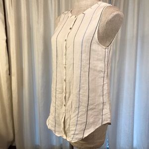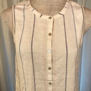 C&C California NEW Linen Sleeveless Striped Shirt Small Cream