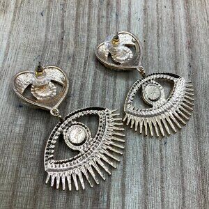 C&C California NIB Evil Eye Heart Dangling Rhinestone Stud Earrings