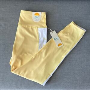 C&C California Pale Banana Yellow High Waist Cropped Workout Leggings Medium NWT
