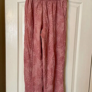 C&C California Pants Pink Palm Pull On Wide Leg Beach Lagenlook Casual