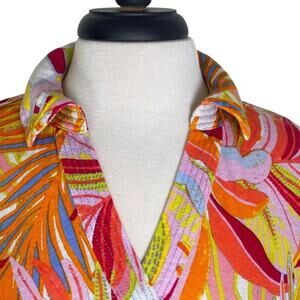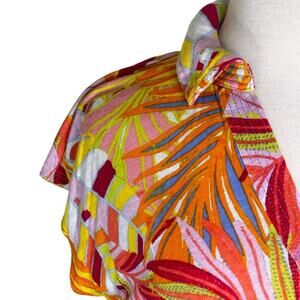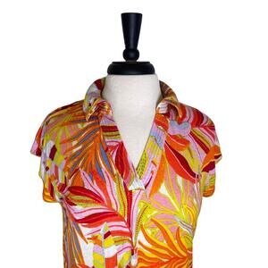 C&C California Pink Orange Yellow Mod Tropical Print Linen Dress Women’s Sz S