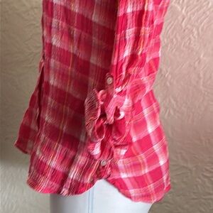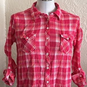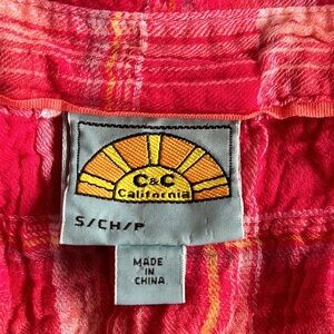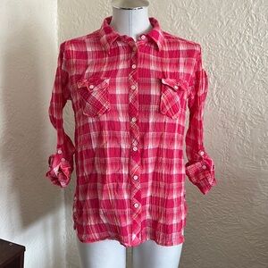 C&C California Pink Plaid Lightweight Woven Crinkle Button Up Shirt Small