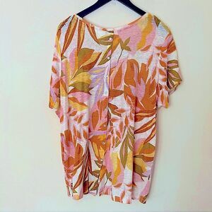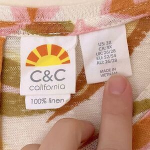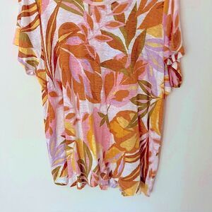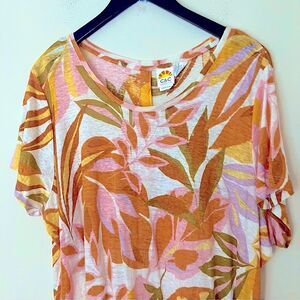 C&C California Plus Size 100% Linen Tropical Print Short Sleeve Top Size 3X