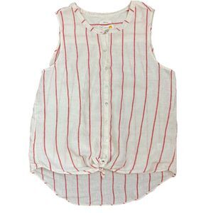C&C California Red Striped 100% Linen Button Down Sleeveless Shirt Womens Large