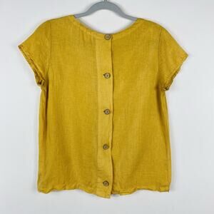 C&C California Size XS 100% Linen Short Sleeve Button Back Top Yellow