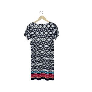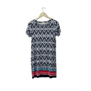 C&C California Small Shift Dress Short Sleeve Knee Length Stretch Boho Bohemian Aztec Southwestern Stripe Womens Viscose/Spandex Pullover