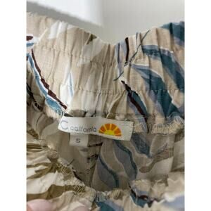 C&C California Tan Leaf Pattern Hawaiian Style Elastic Casual Pants Linen Small