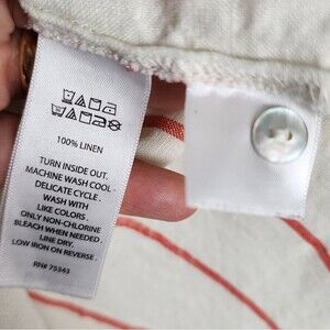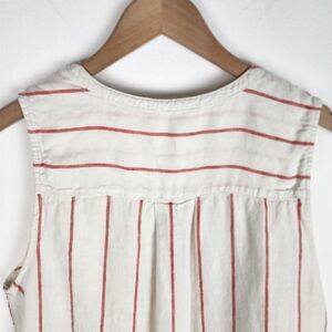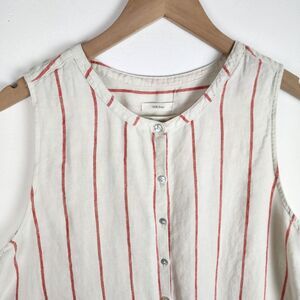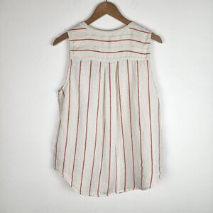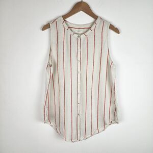 C&C California Top White Linen Red Stripes Sleeveless Button Up Shirt Blouse L