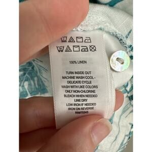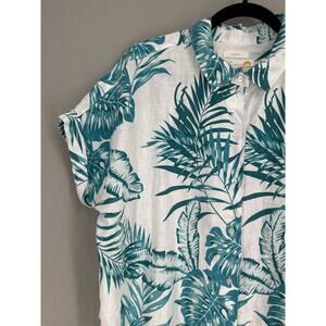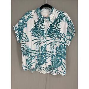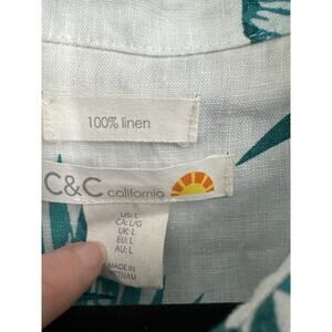 CC California Top Womens Large Green Floral Linen Button Short Sleeve Boho Beach
