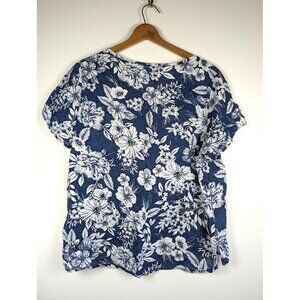 C&C California Top Women's Size 1X 100% Linen Floral Hawaiian Beach Vacation