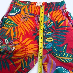 C&C California Tropical Linen Wide Leg Floral Elastic Waist Crop Pants Women’s S Boho