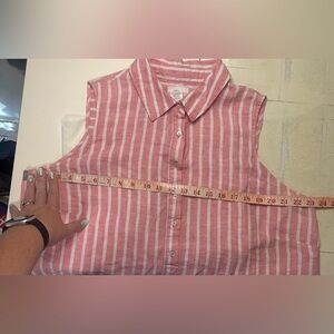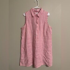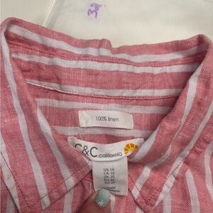 C&C California Tunic Shirt Dress Size 1X 100% Linen Muted Red Stripe Shift