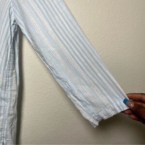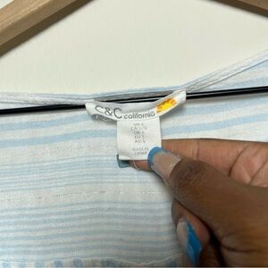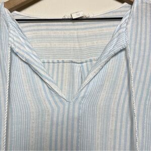 C&C California Women Linen Tunic Top Large Blue Stripe Sheer Coverup Beach Fring