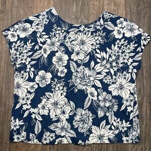 C&C California Women M 100 Linen Button Front Pullover Boho Blouse Tropic Floral