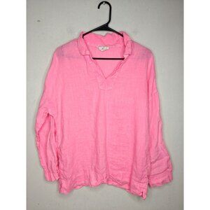 C&C California Women's Barbie Hot Pink 100% Linen Blouse Size Medium 3/4 Sleeve