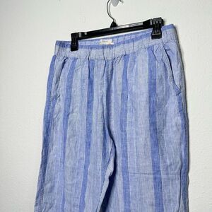 C&C California Women’s Blue Striped Linen Raw Hem Pull On Pants Size M Pockets