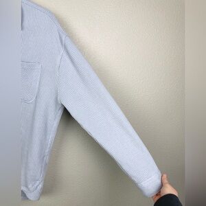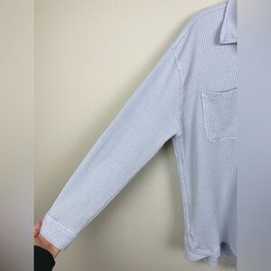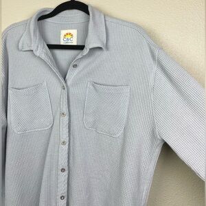 C&C California Women's Large Baby Blue Thermal Button Up Shirt Waffle Knit Button Down Collared Top Pockets Casual Loungewear Everyday Coastal Travel Comfy Cozy