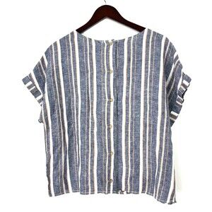 C&C California Womens Linen Shirt L Blue Monarch Striped Back Button Up Top T3