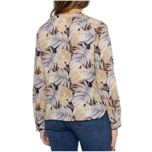 This tunic-style shirt features a beautiful palm pattern and comes in a size L. It's machine washable and easy to care for. The shirt is perfect for travel, parties, business, or casual wear. The relaxed fit and woven fabric make it comfortable to wear all day long. This shirt is a must-have for any fashion-conscious woman who wants to look stylish and feel comfortable.