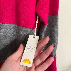 C&C California Womens NWT Gray Pink Striped Wool Blend Round Neck Sweater Large